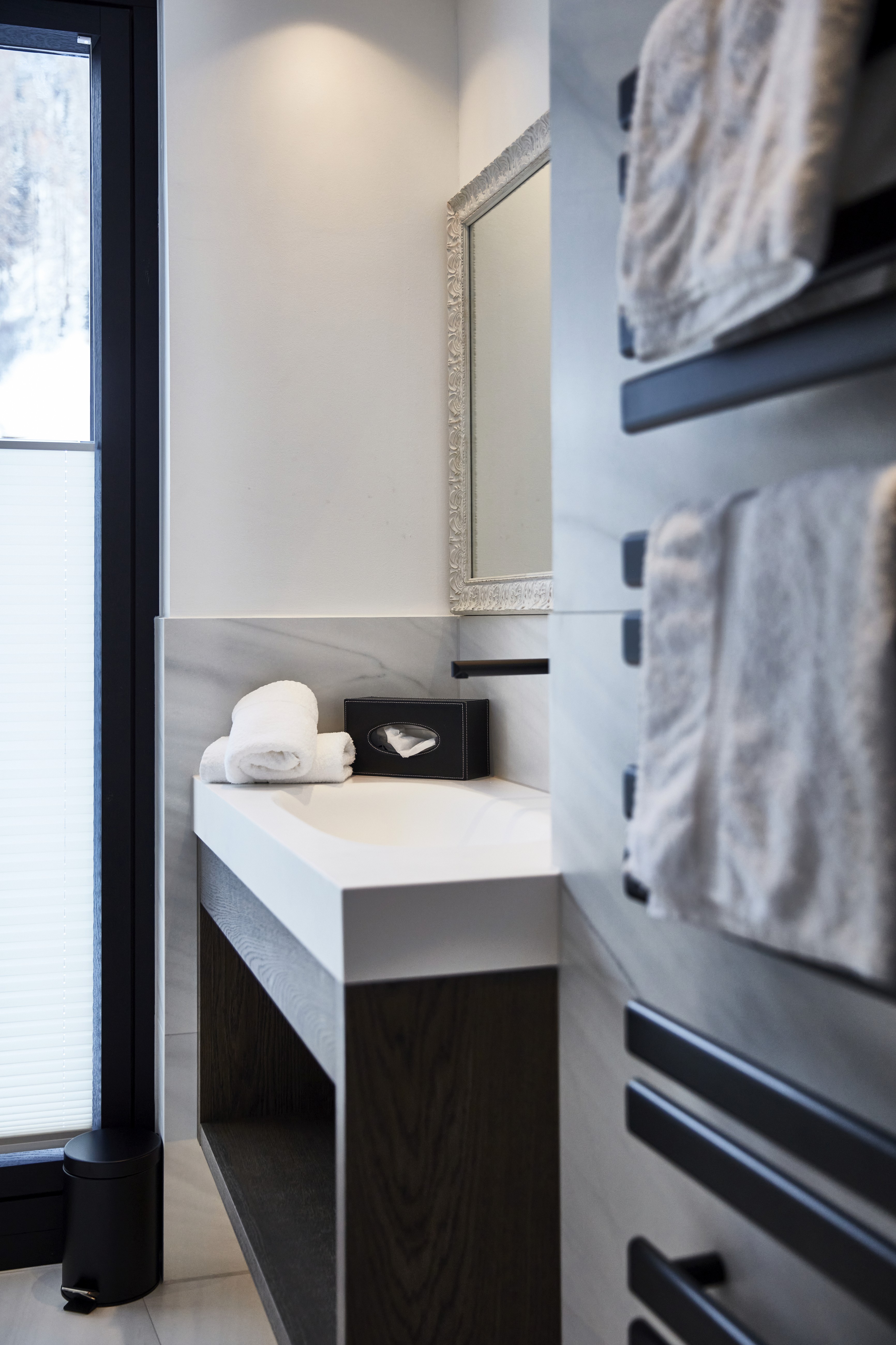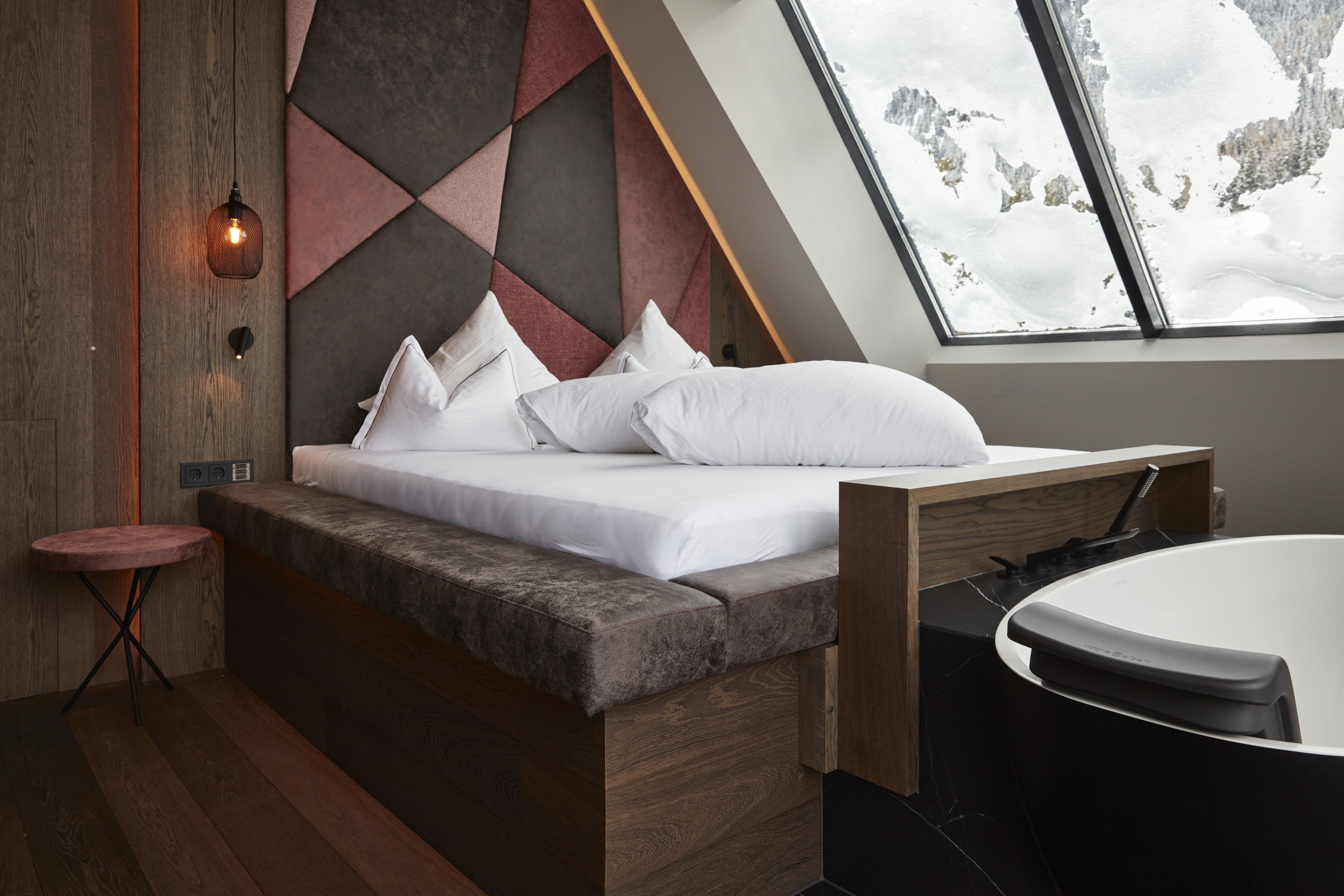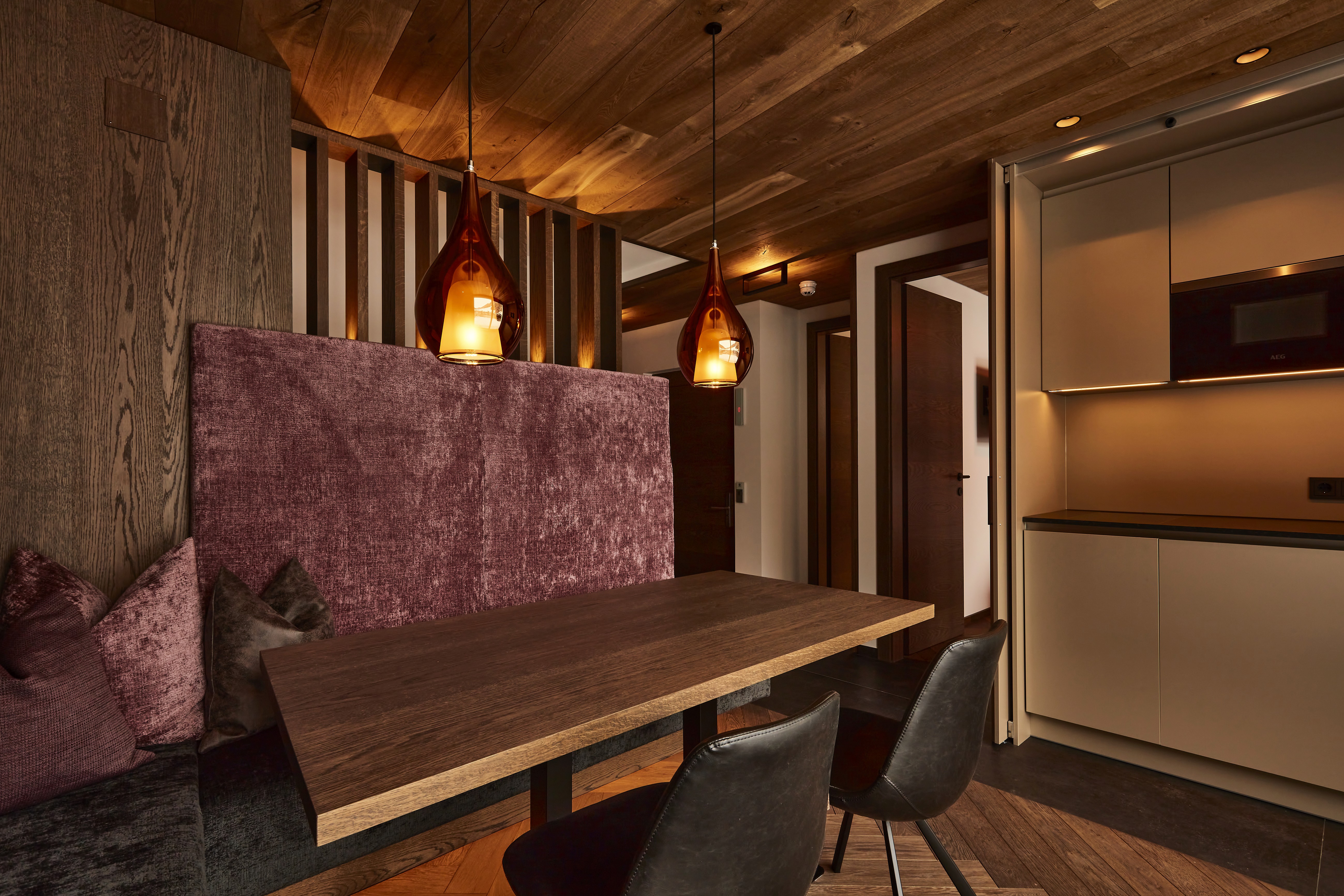 Our modern and cozy loft offers a living area, two comfortable double rooms spread over 2 floors, as well as two stylish bathrooms and breathtaking views of the mountains. Enjoy amenities such as free Wi-Fi, flat-screen TV, telephone, room safe, hairdryer, and bathrobe with sauna towels, as well as bath slippers for your visit to our Alpina SPA. In the evening, you have the opportunity to enjoy delicious dishes in the in-house restaurant PEAK. We look forward to providing you with an unforgettable stay.